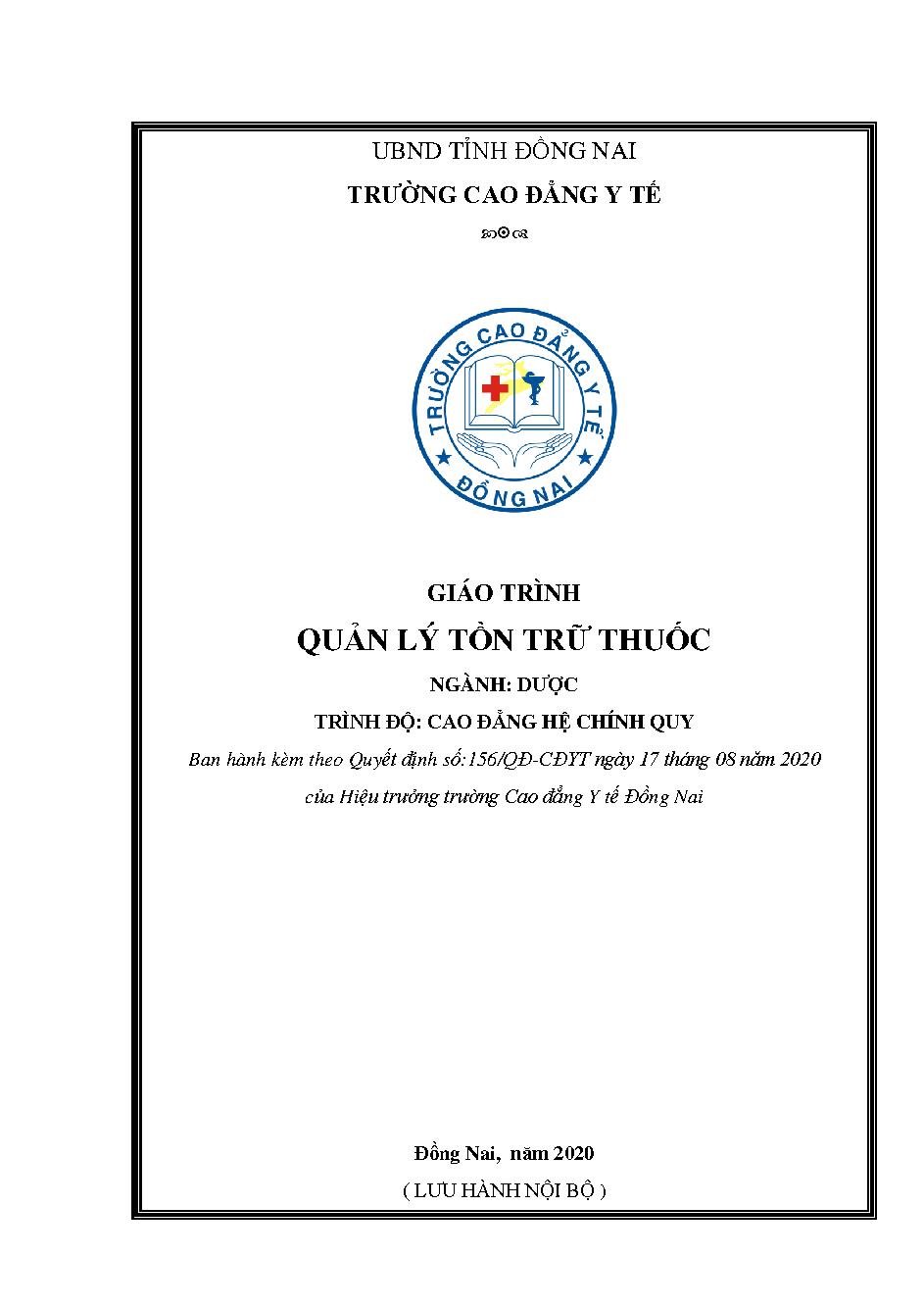 Giáo trình quản lý tồn trữ thuốc: Ngành dược / Nguyễn Thị Thanh Thủy chủ biên; Trương Như Kiều Phượng biên soạn